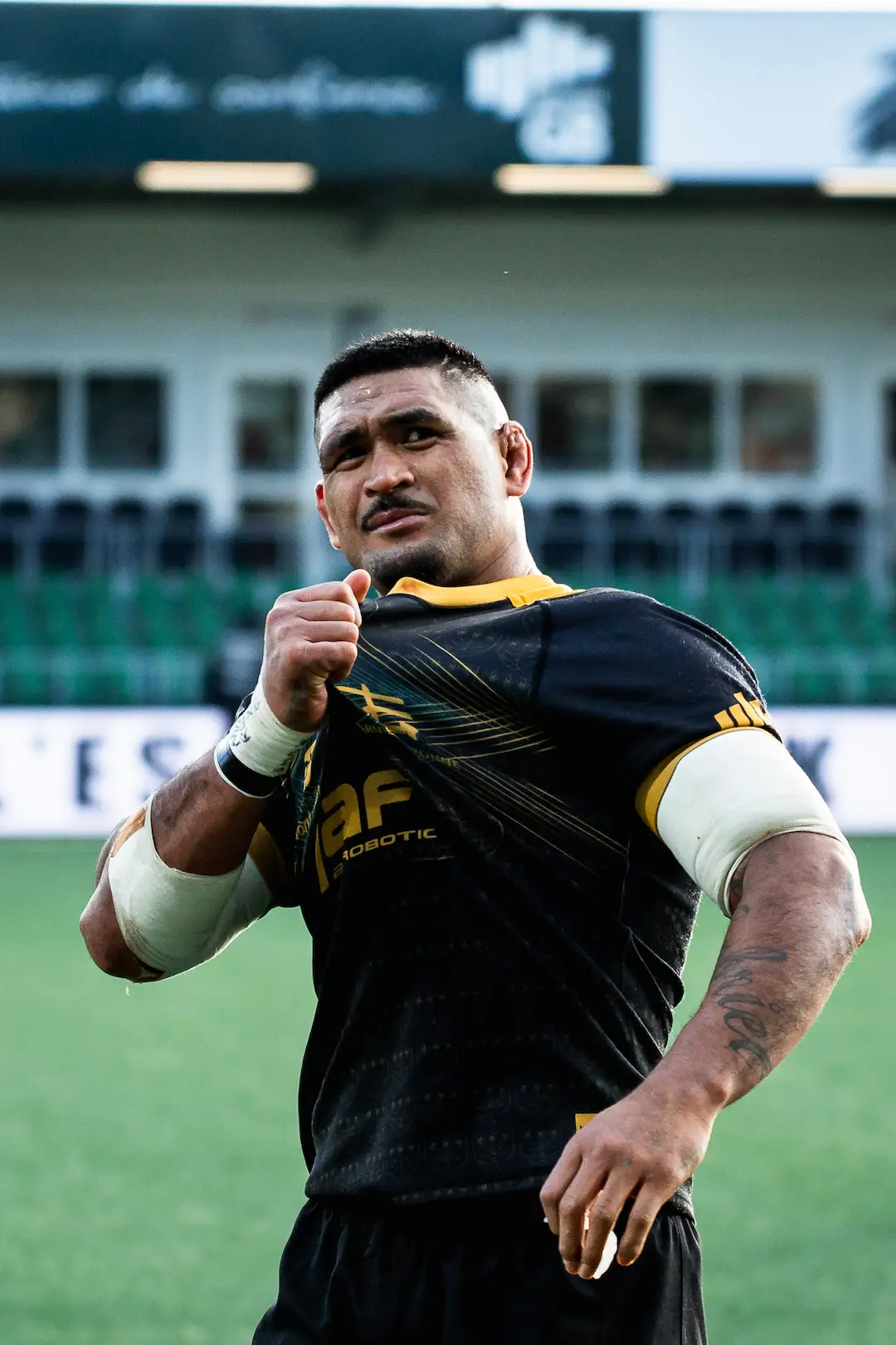 Joueur de l’USM Montauban sur le terrain devant les supporters